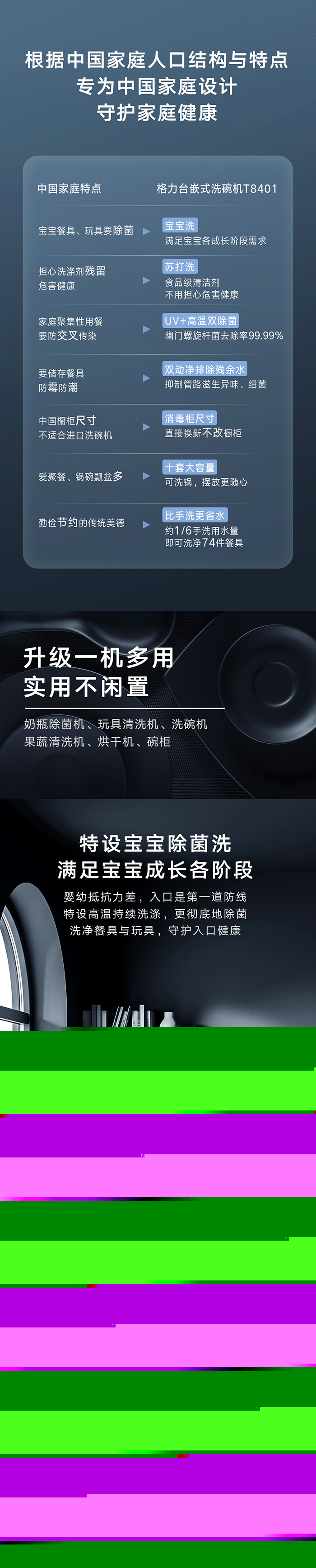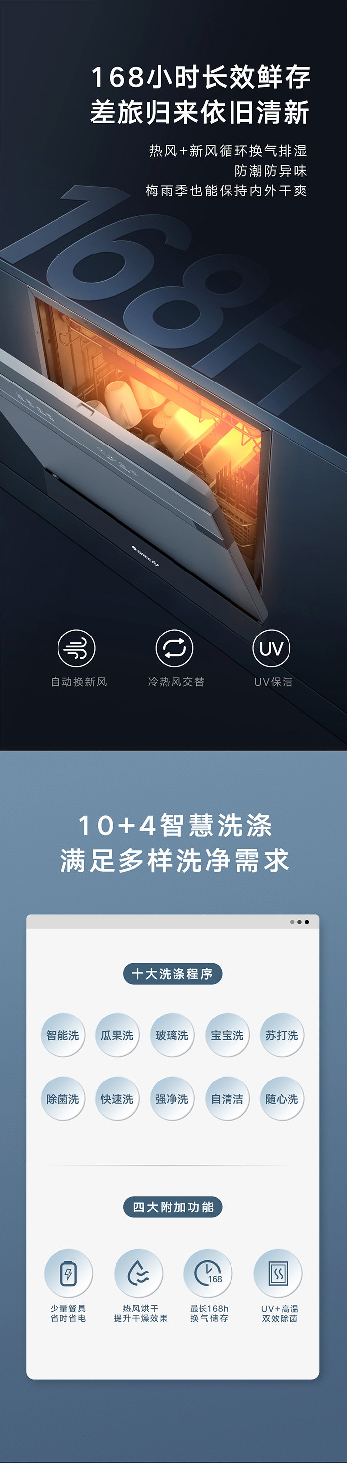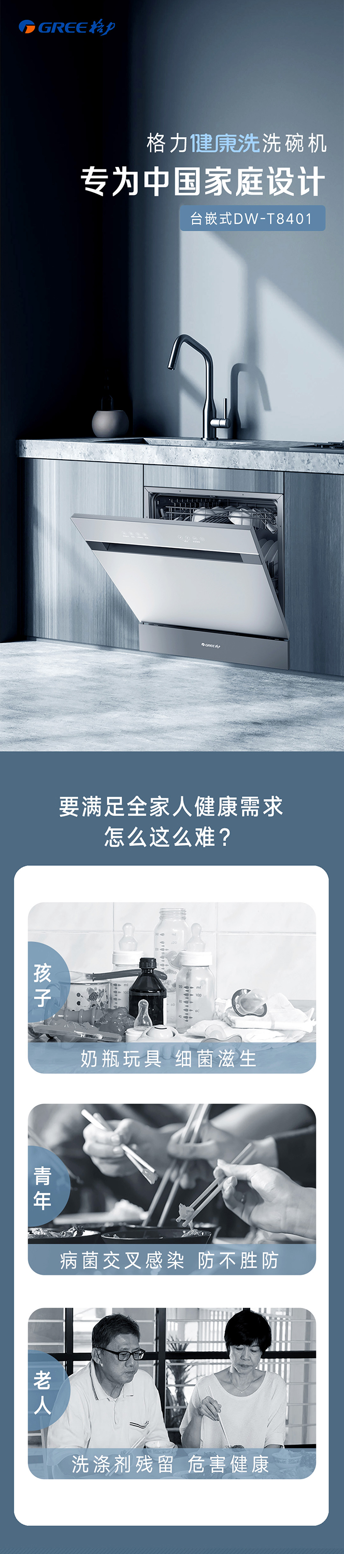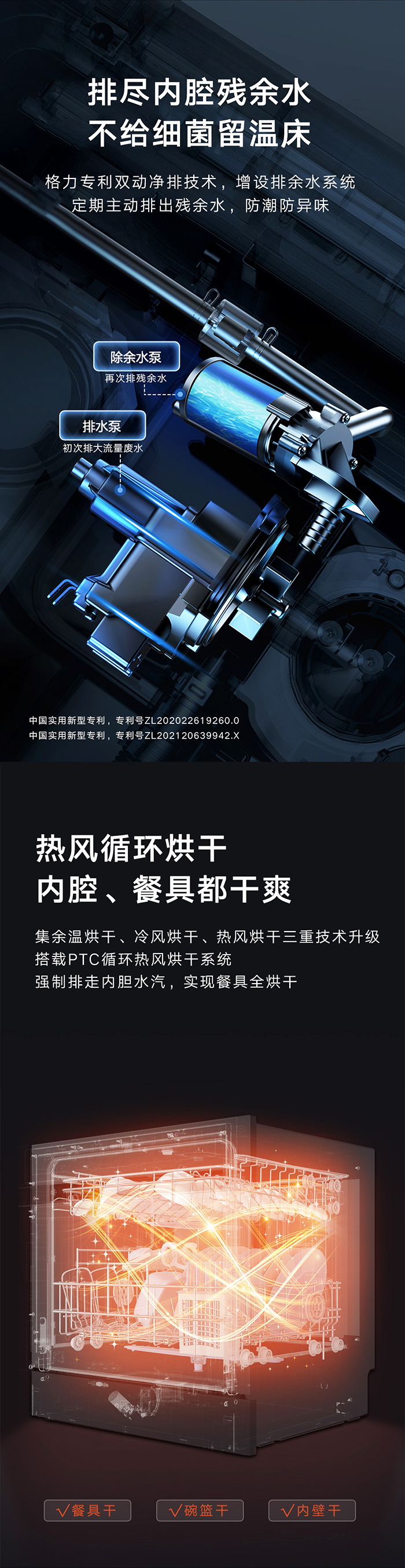格力健康洗洗碗機(jī),專(zhuān)為中國(guó)家庭設(shè)計(jì);洗除排烘存更全能;熱風(fēng)循環(huán)烘干,內(nèi)腔餐具都干爽