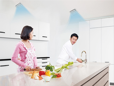 情侶送風(fēng):廚享特設(shè)雙出風(fēng)口,開(kāi)啟時(shí),兩個(gè)風(fēng)口從不同位置出風(fēng),增加夫妻搭檔烹飪的樂(lè)趣。 定點(diǎn)送風(fēng):設(shè)置定點(diǎn)送風(fēng),直吹人體,能快速降低燥熱感,讓您享受清涼烹飪,同時(shí)避免大范圍送風(fēng)產(chǎn)生的能耗。